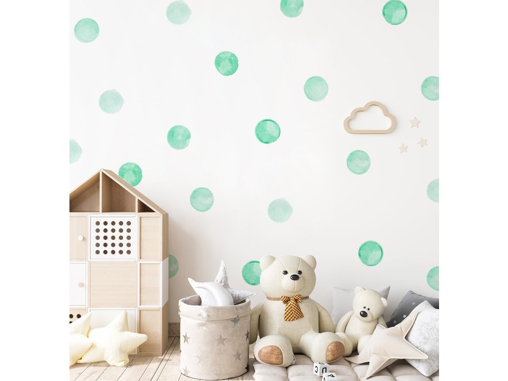Bodky na stenu. Akvarelové bodky, zelene bodky na stenu