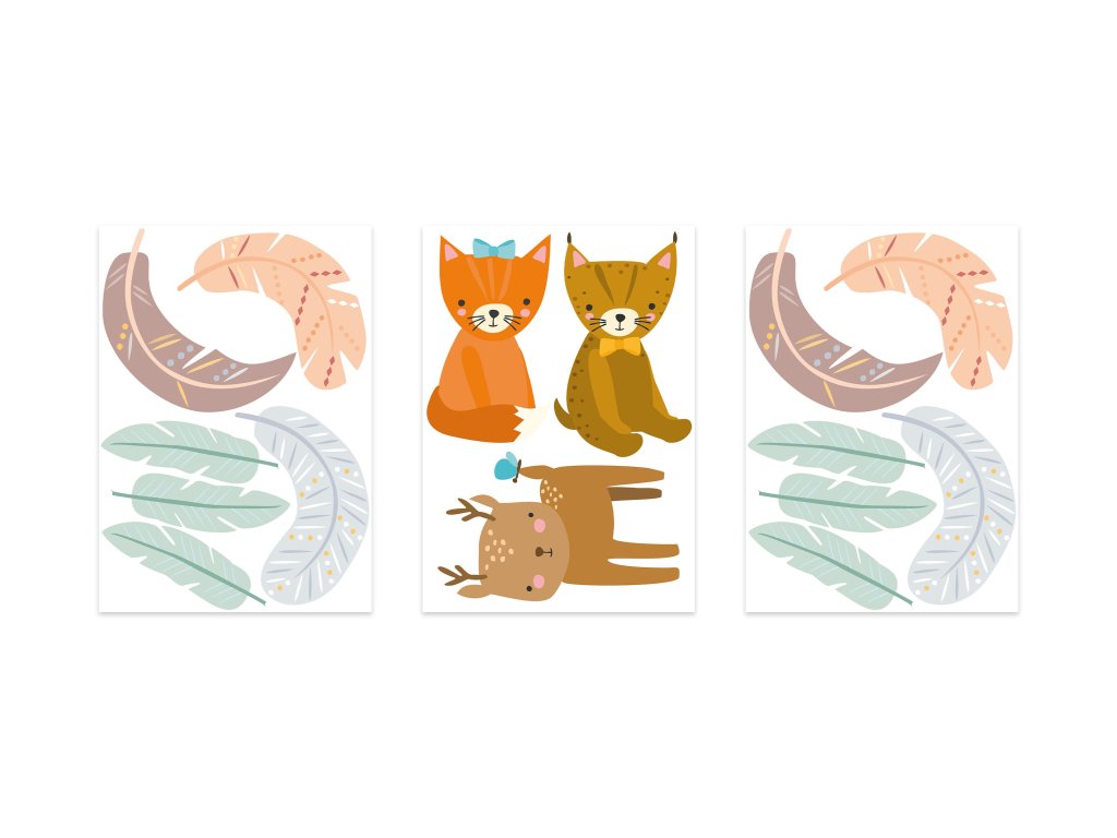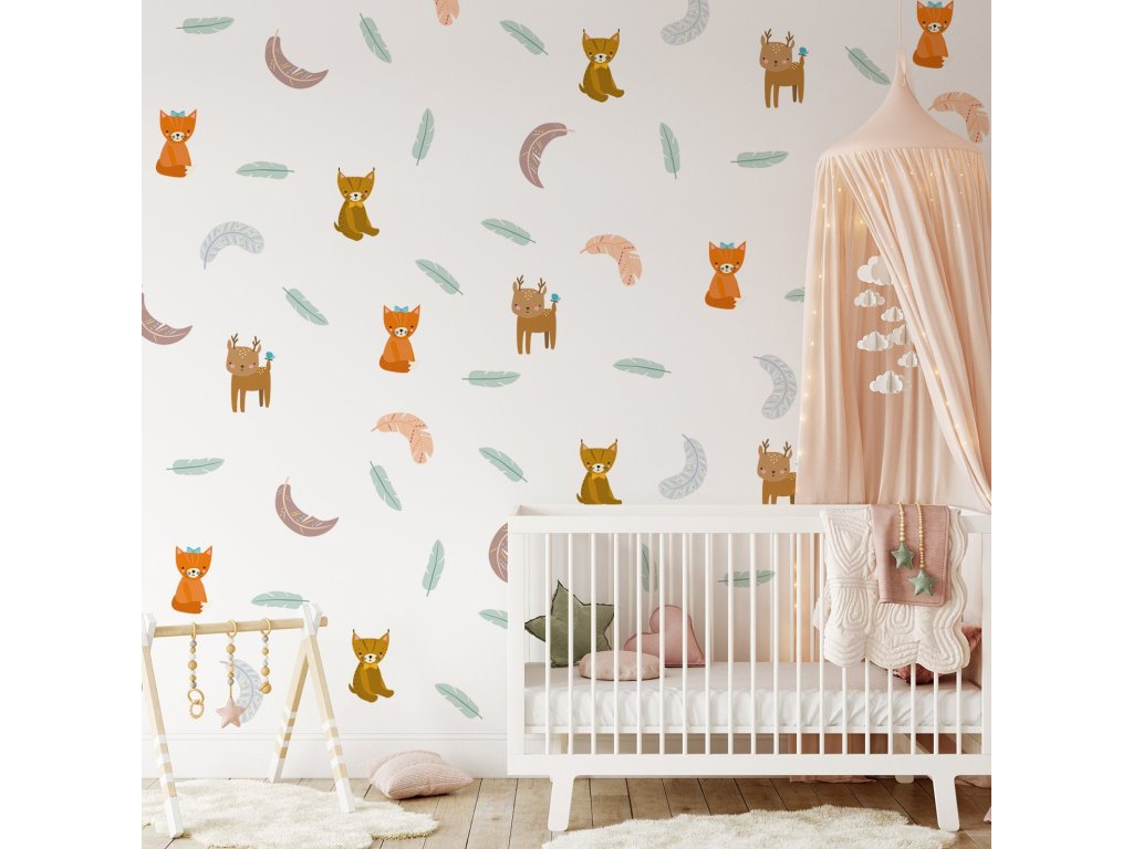 Boho Nálepky na stenu. Srna Lynx Fox nástenné dekorácie