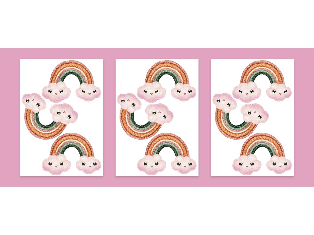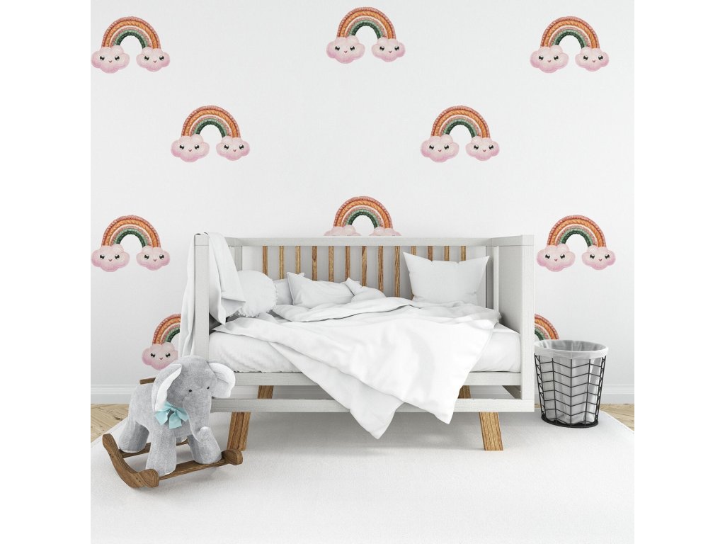 Boho nálepky na stenu. Dúha Oblaky Úsmevy