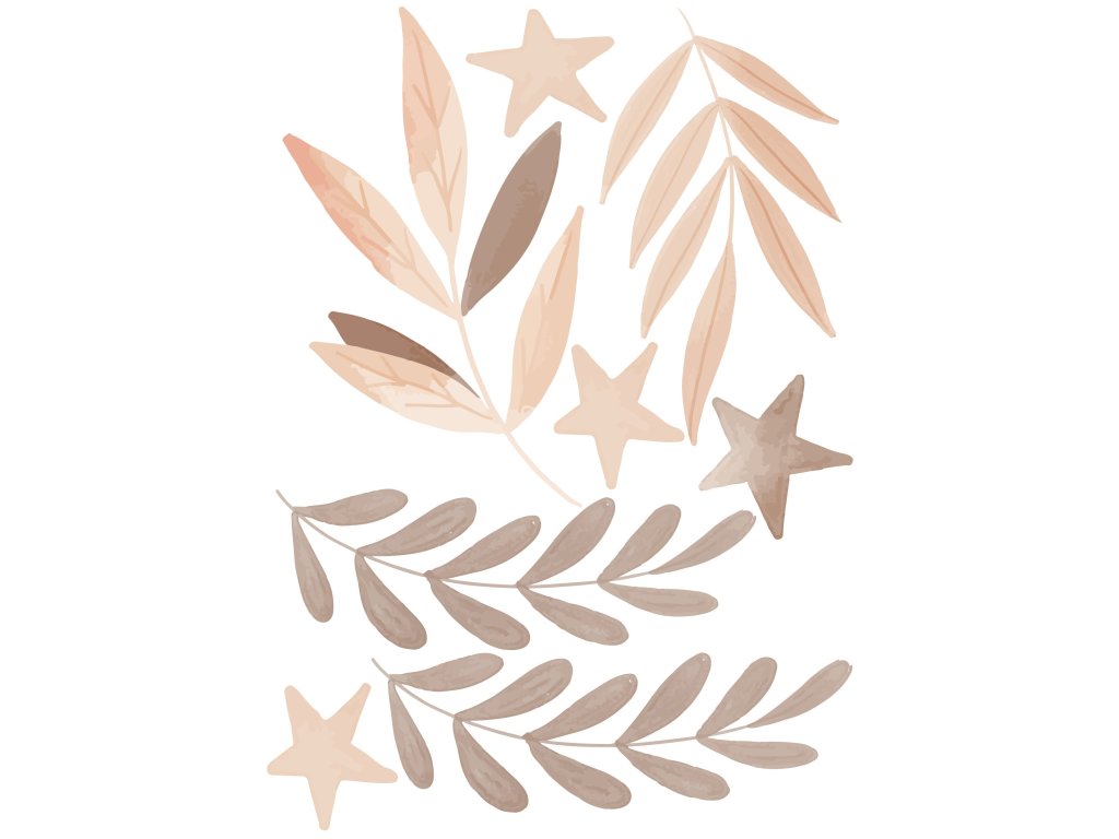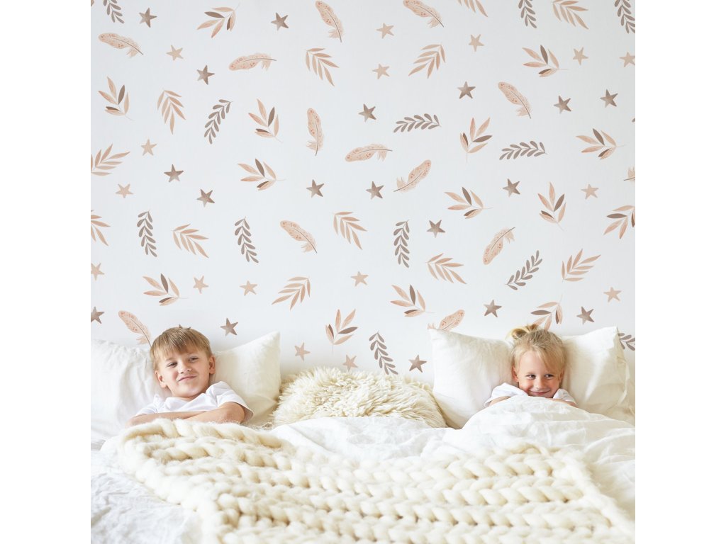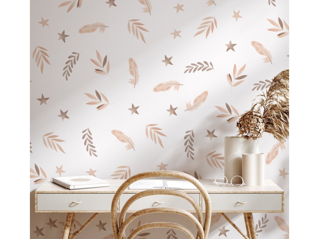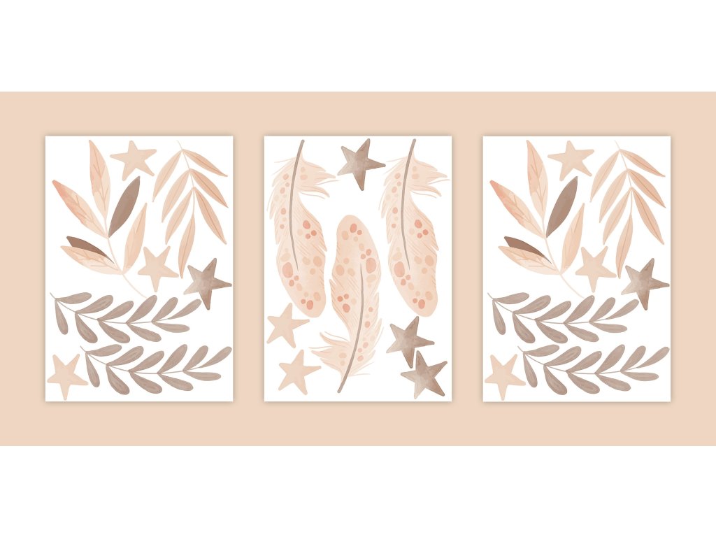 Boho Nálepky na stenu. Abstraktné listy, perie, hviezdy