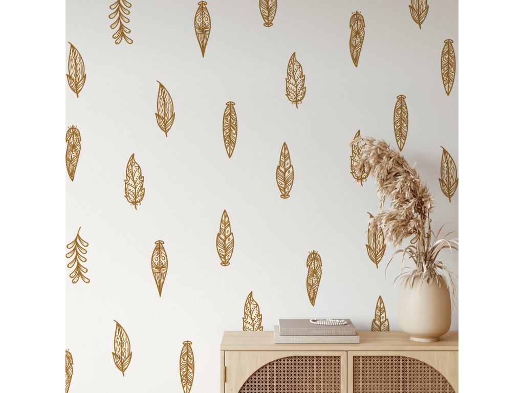 Boho Nálepky na stenu. Boho s perím (3)