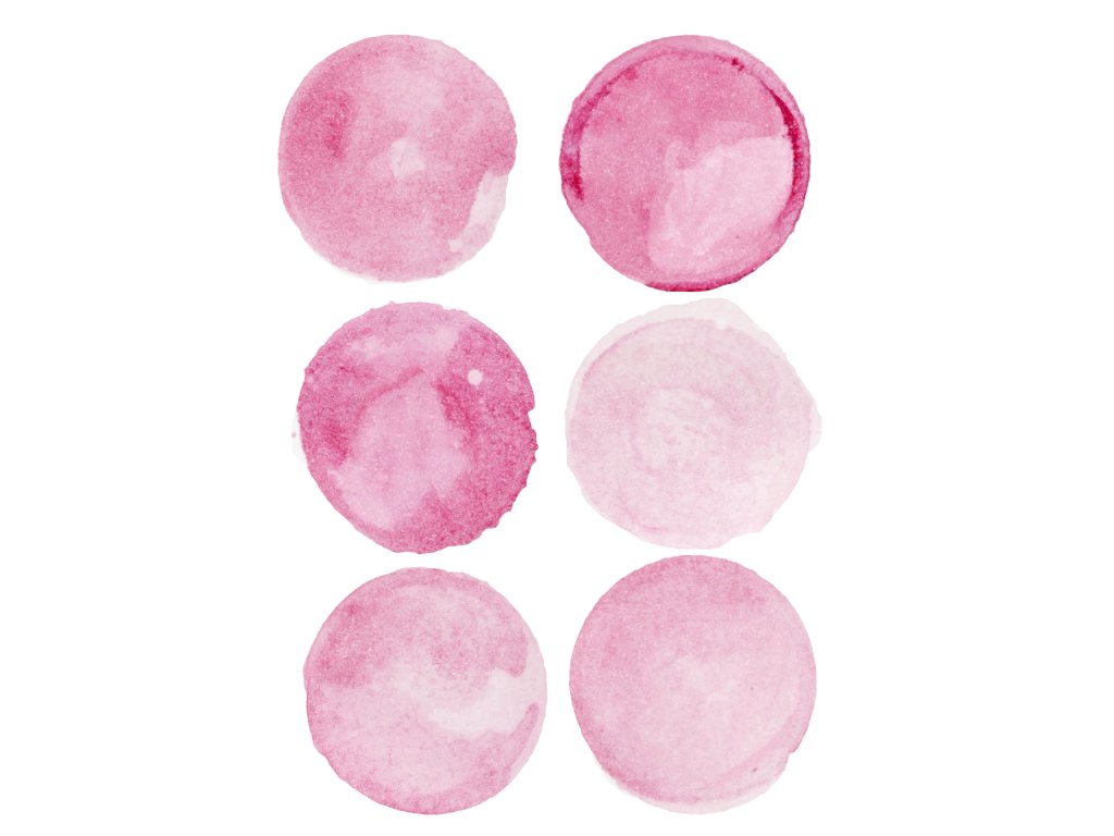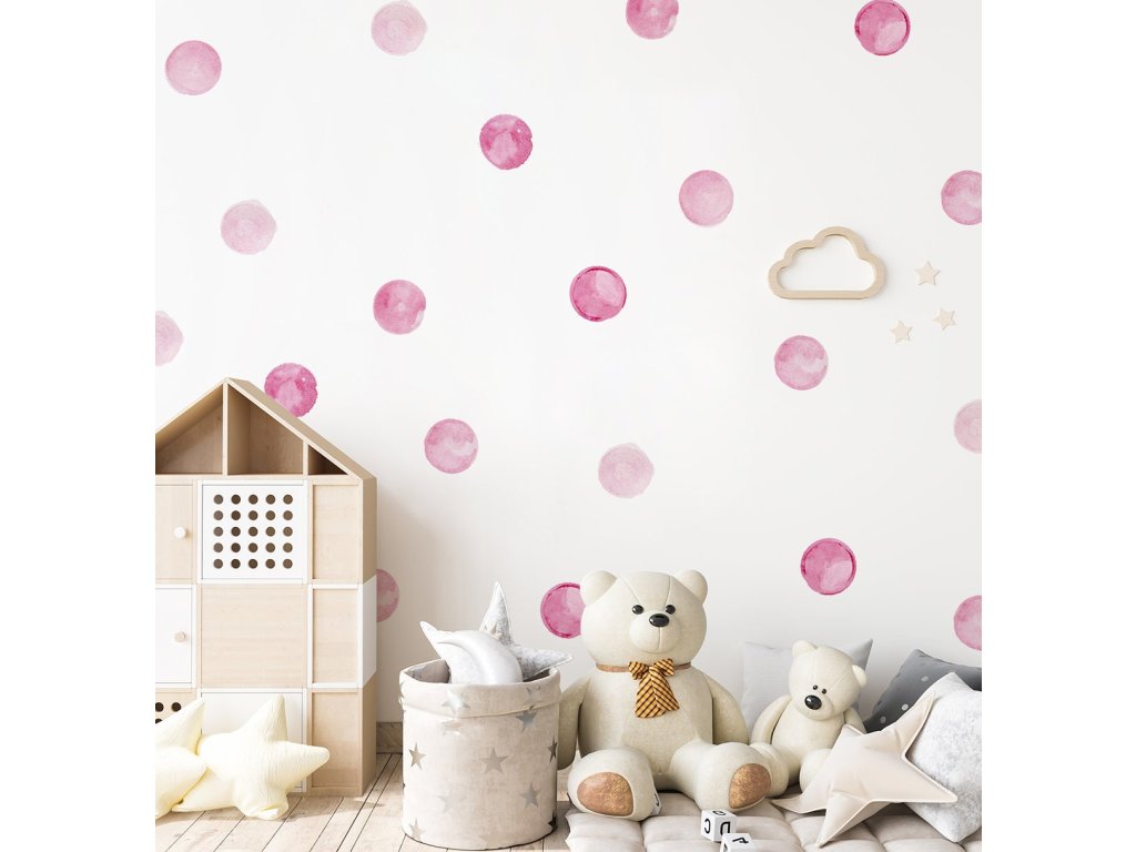 Tečky na zdi. Watercolor Dots, růžové tečky na zdi