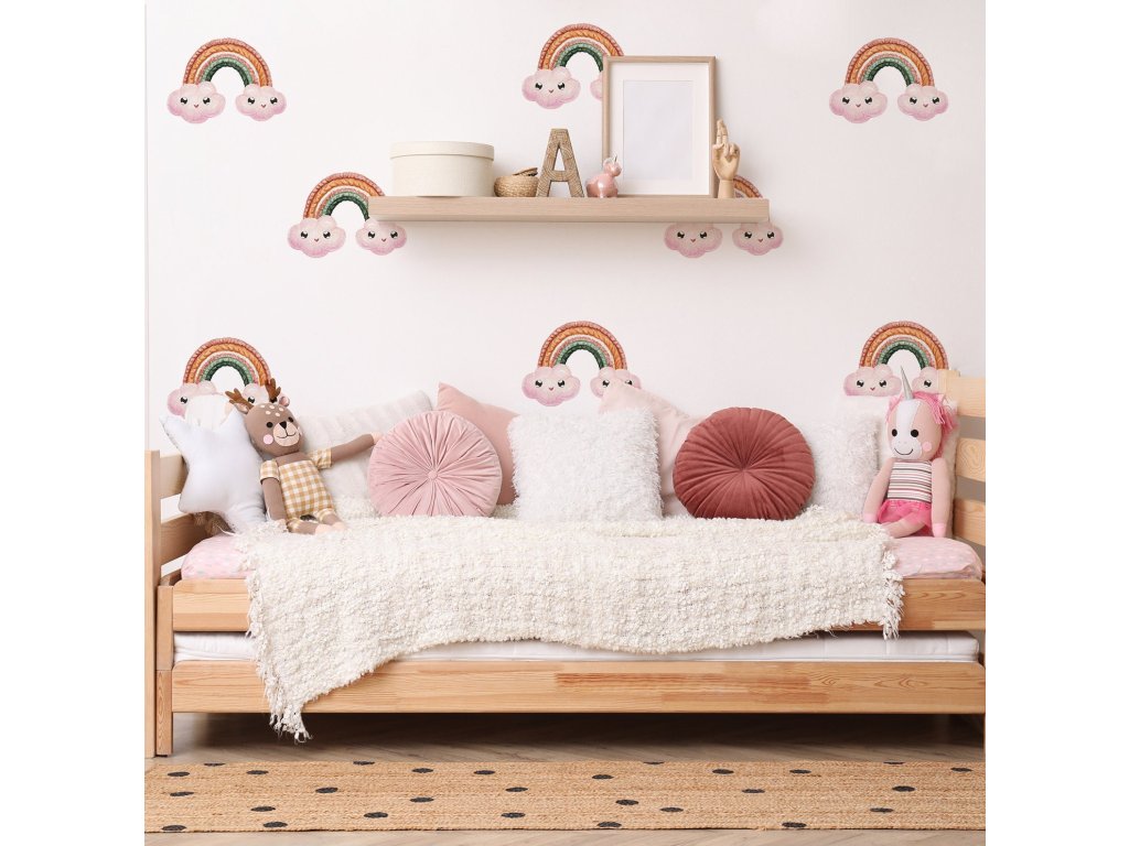 Boho nálepky na zdi. Duhové mraky se usmívají