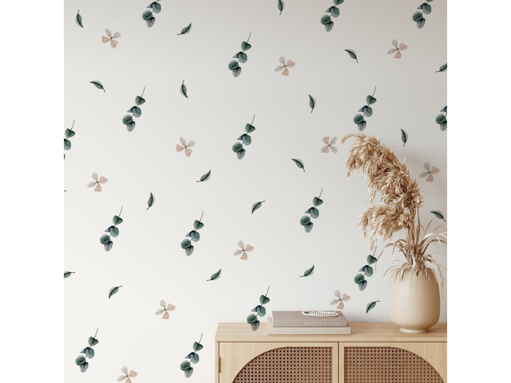 Boho nálepky na zdi. Abstraktní listy, květiny