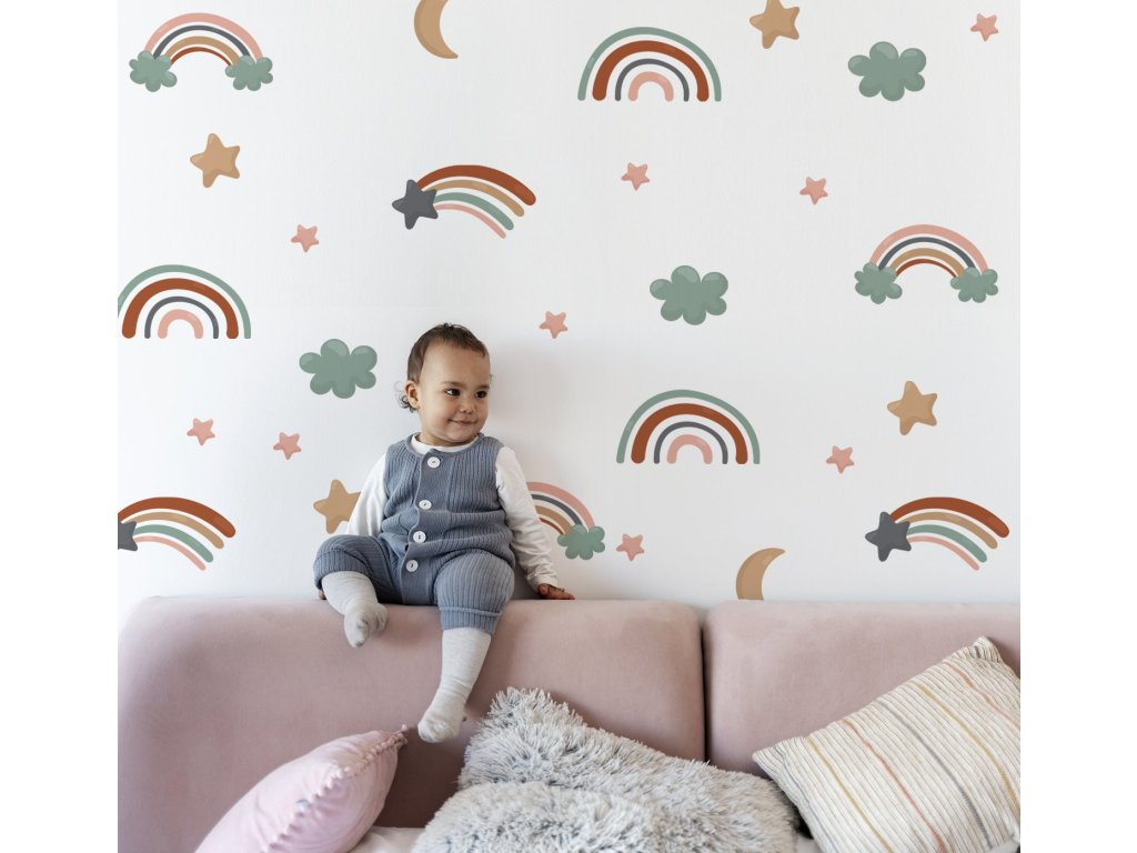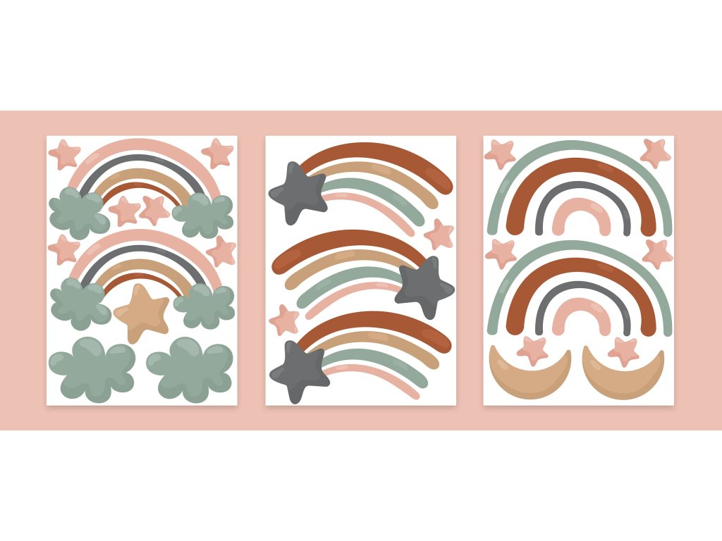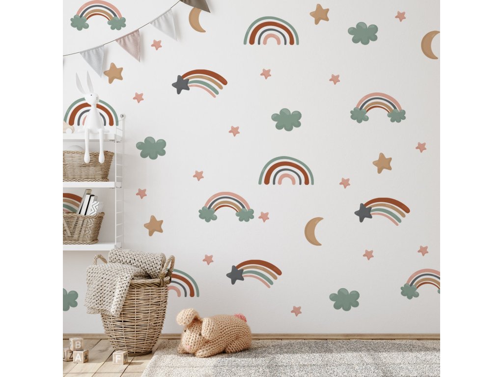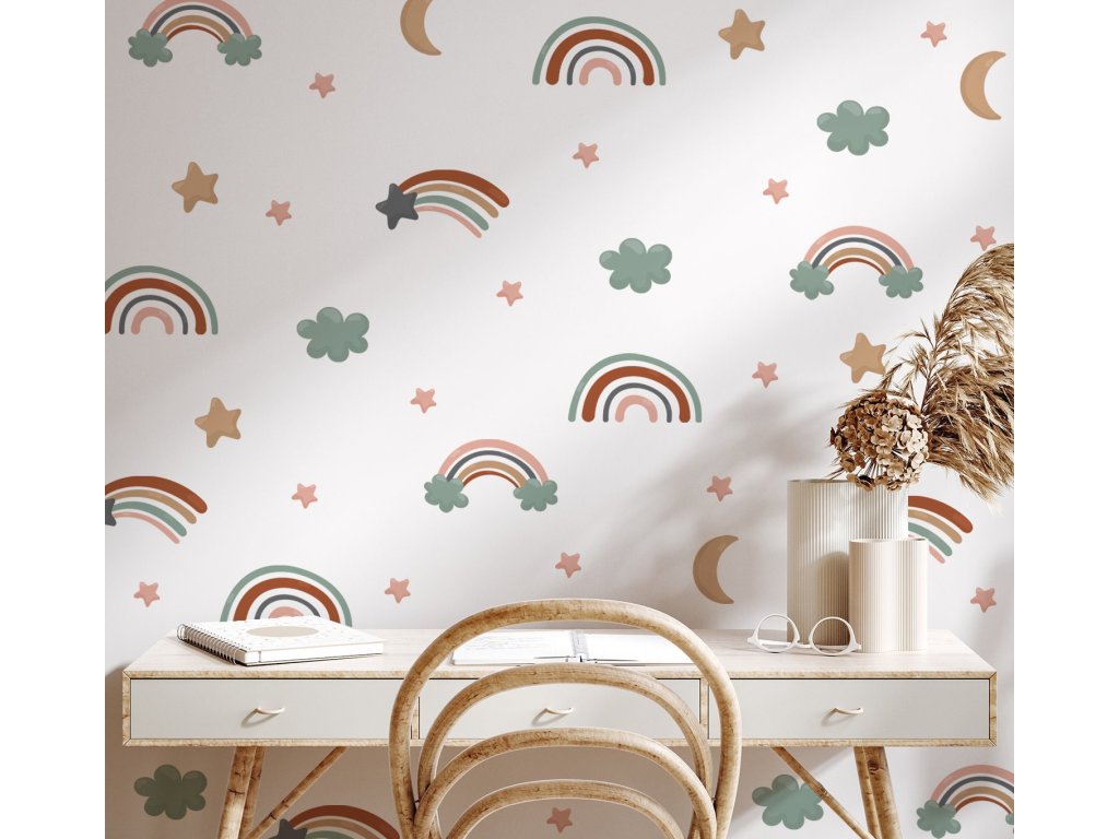 Boho nálepky na zdi. Abstraktní duha, mraky, hvězdy (2)