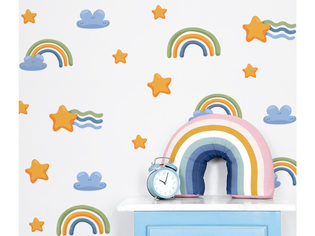 Boho nálepky na zdi. Abstraktní duha, mraky, hvězdy