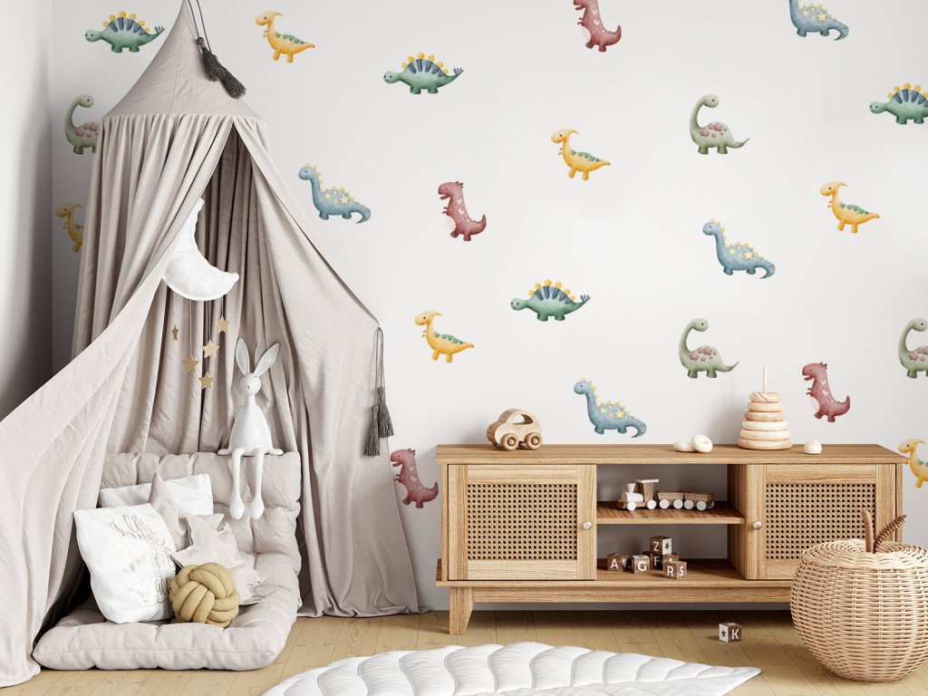 Dinosaurs nálepky na zdi. Barevné dinosauři