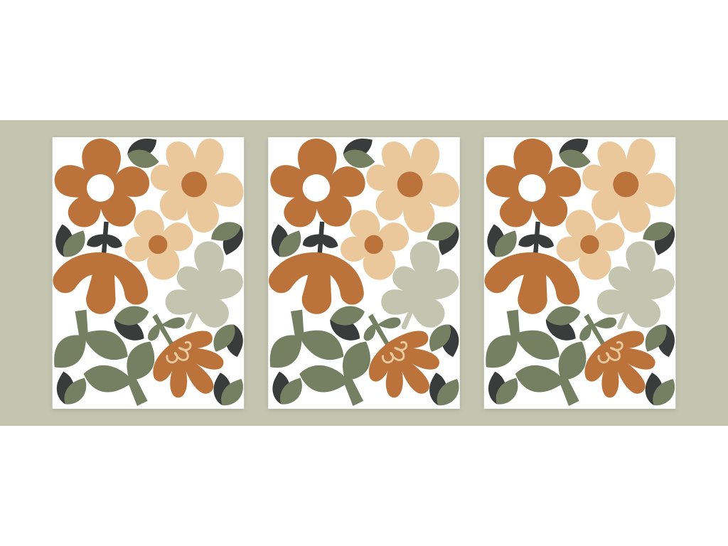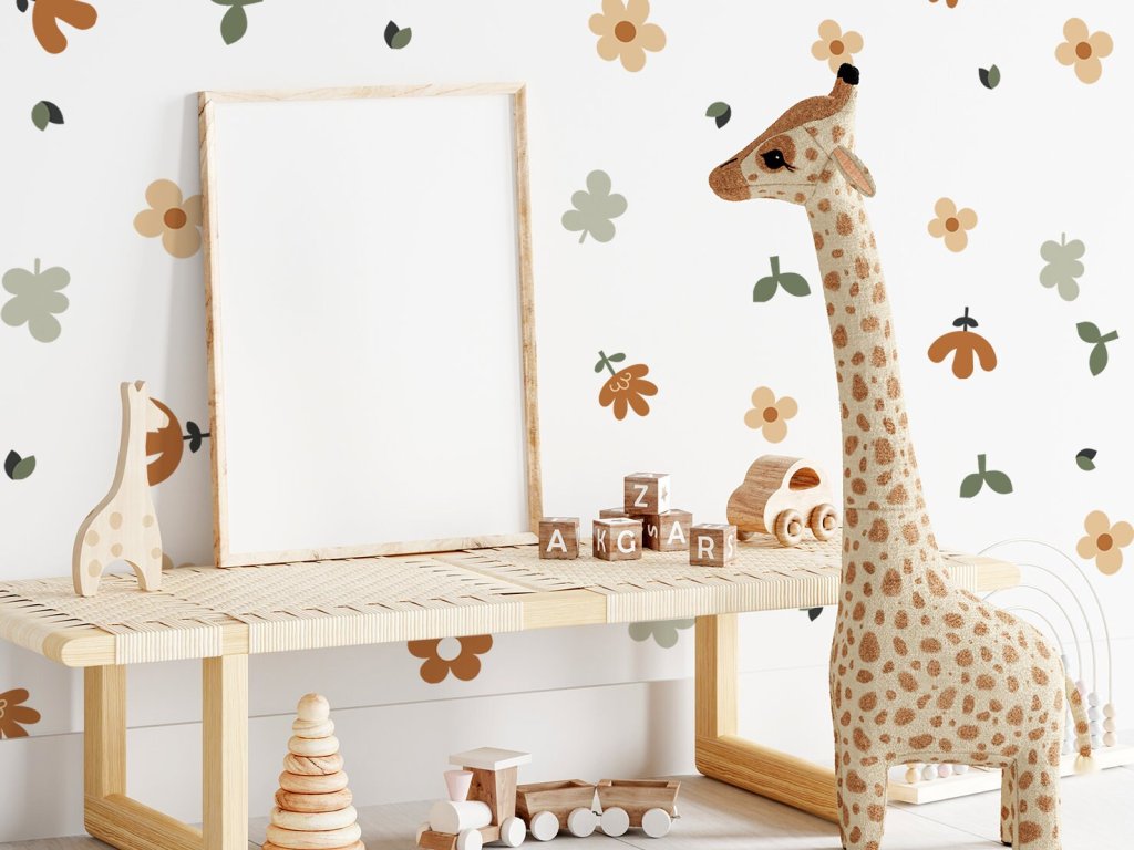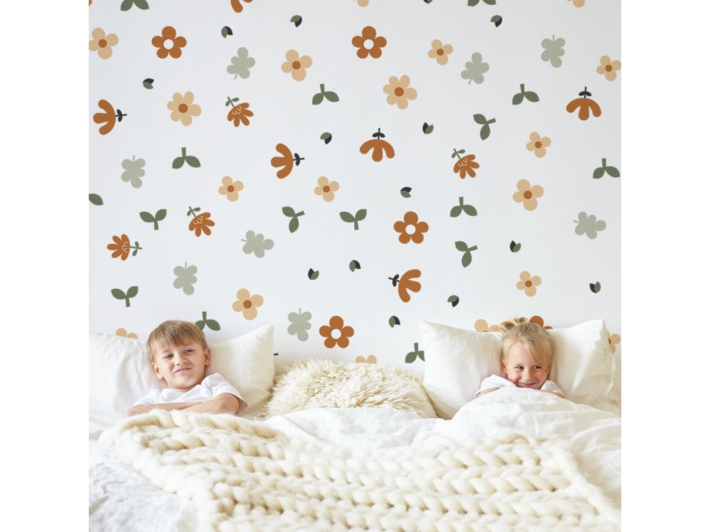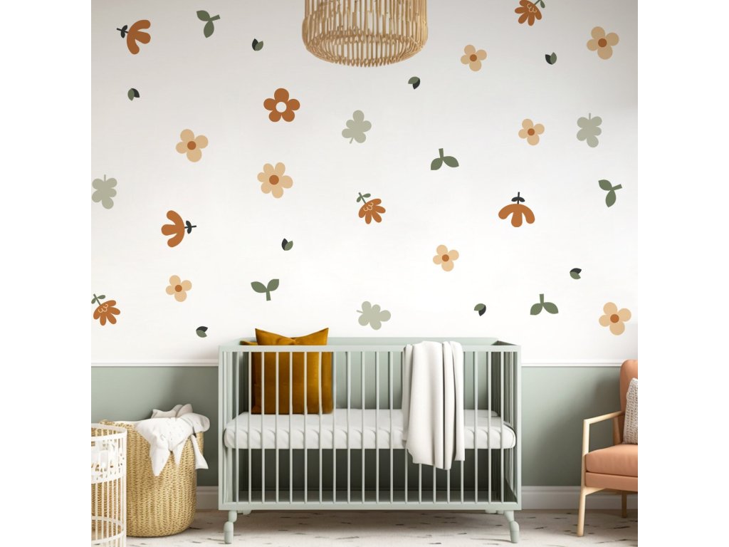 Květinové nálepky na zeď. Abstraktní květinové, pastelové květinové nálepky na zdi (8)