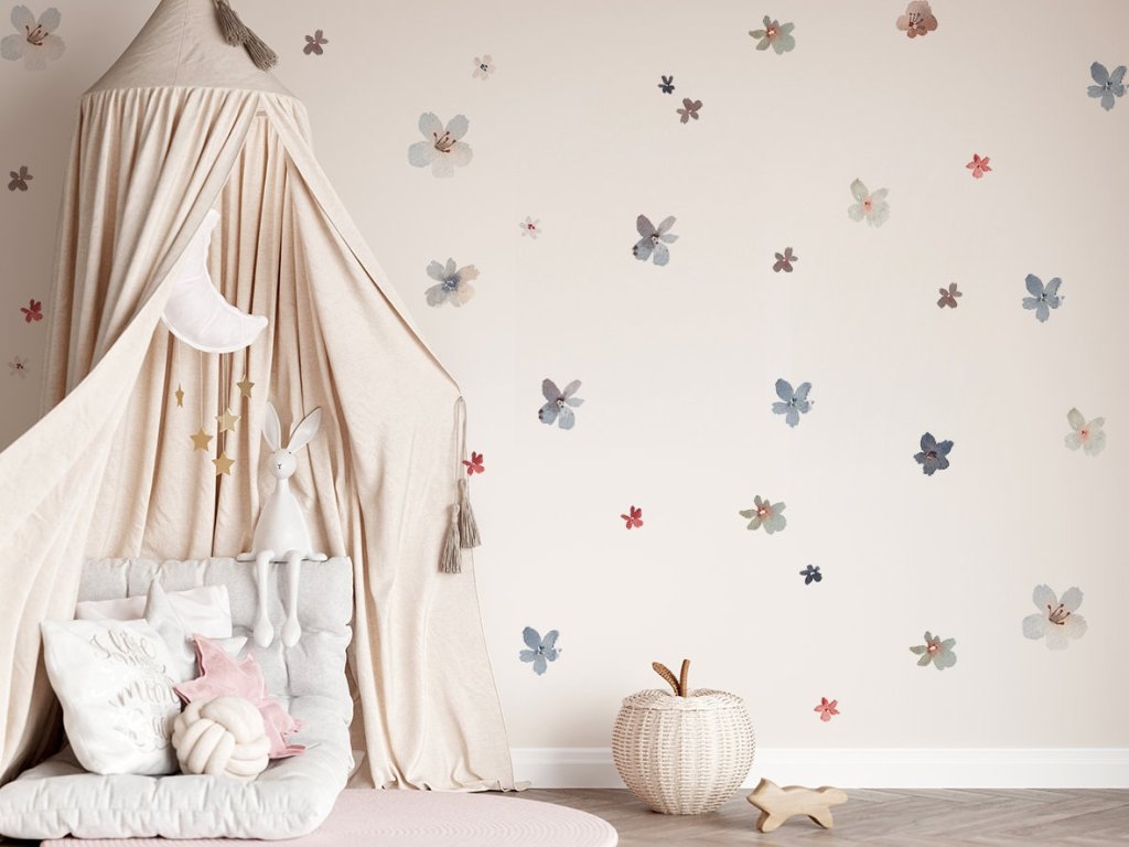 Květinové nálepky na zeď. Akvarel botanické dekorace