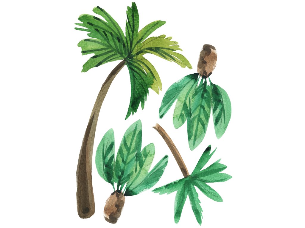 Tropická samolepka na palmovou stěnu. Tropické listy