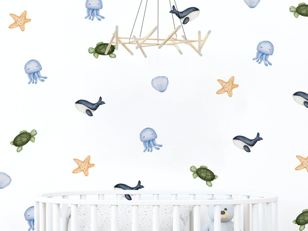 Nálepky na zeď oceánských zvířat. Roztomilá oceánské zvířata