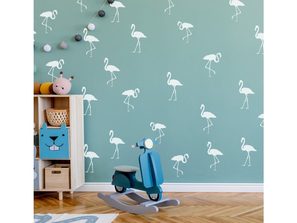 Nálepky na zdi plameňáků. Bílé plameňáky