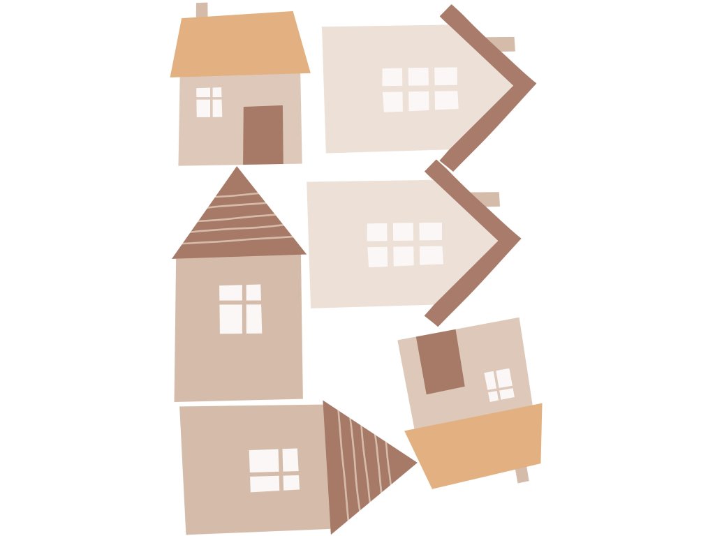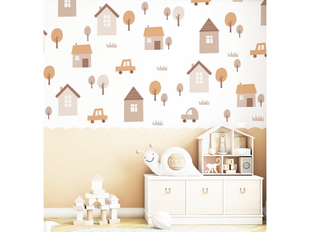 Nálepky na zdi krajiny. Domy a stromy (2)