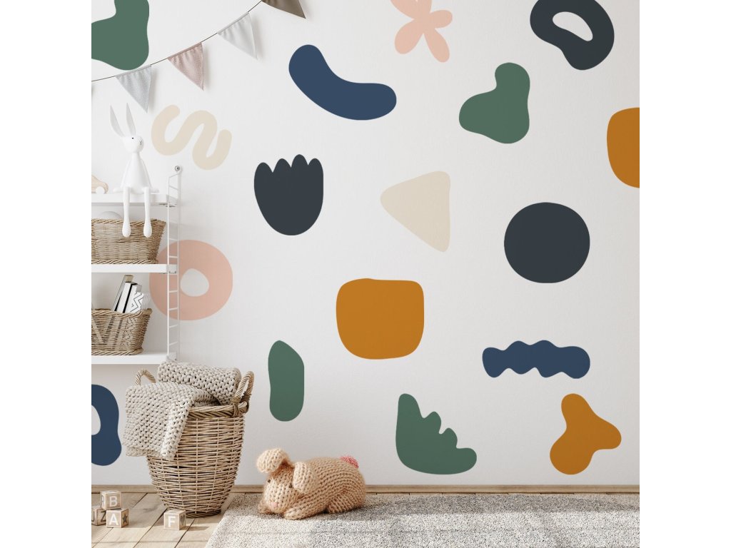 Vytvořte perfektní prostor pro své dítě s našimi barevnými nálepkami na zdi. Nálepka na zeď je jedním z nejnovějších trendů v oblasti domácích dekorací. Nálepky můžete umístit jednotlivě po zdi podle svých vlastních nápadů. Snadno se aplikují a nenechávají stopy na stěnách! Mohou být loupany a přilepeny, snadno odstraněny a snadno změnily své uspořádání. Každý list se skládá z různých tvarů. Viz vizualizace galerie. Materiál samo -adhezivních výchylek je přesně testován a vybrán, aby se zajistila kvalita první třídy a nejjednodušší aplikaci. Cena je uvedena za počet sad. 1 sada obsahuje 3 listy. Každý list má rozměry 58 x 85 cm (21,65 x 33,46 palce) Jedna sada se hodí na 3-5 metrů čtverečních zdi.Doplňkové parametry