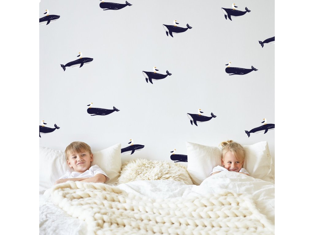 Velryby nálepky na zdi. Zábavné velryby
