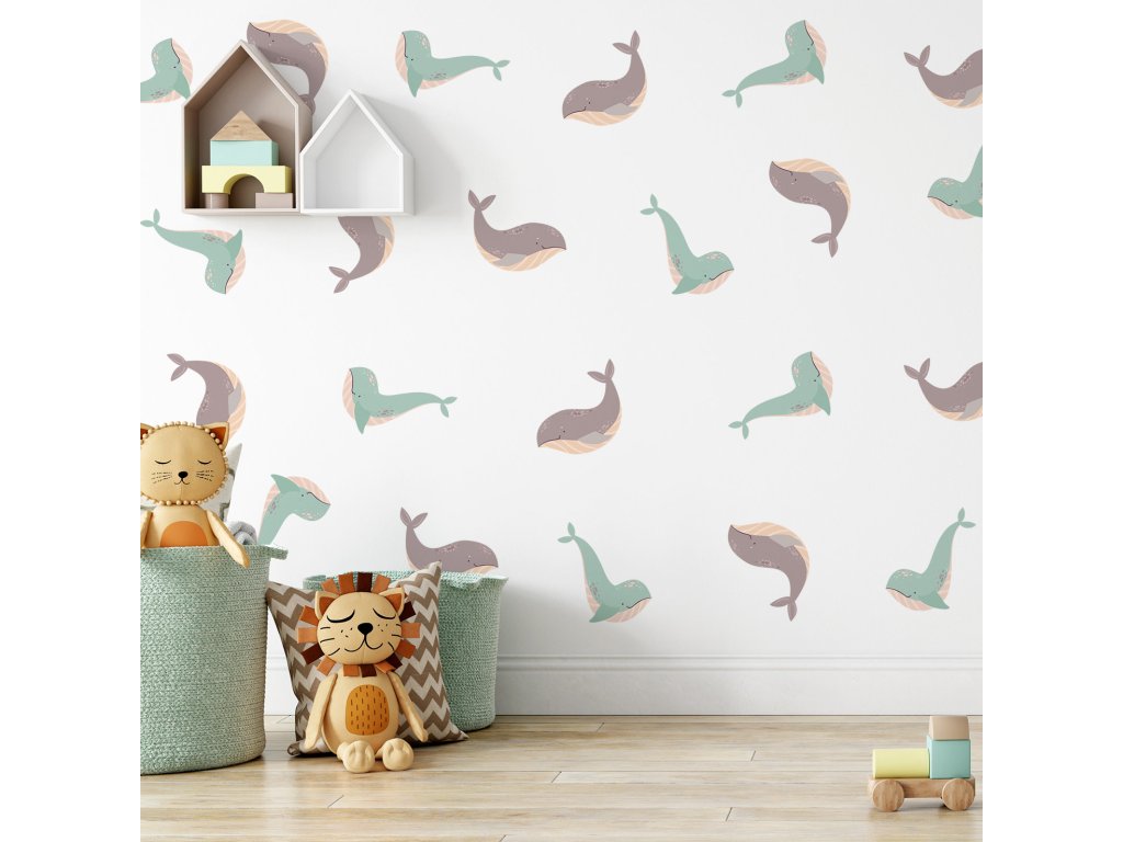 Velryby nálepky na zdi. Zábavné velryby (2)