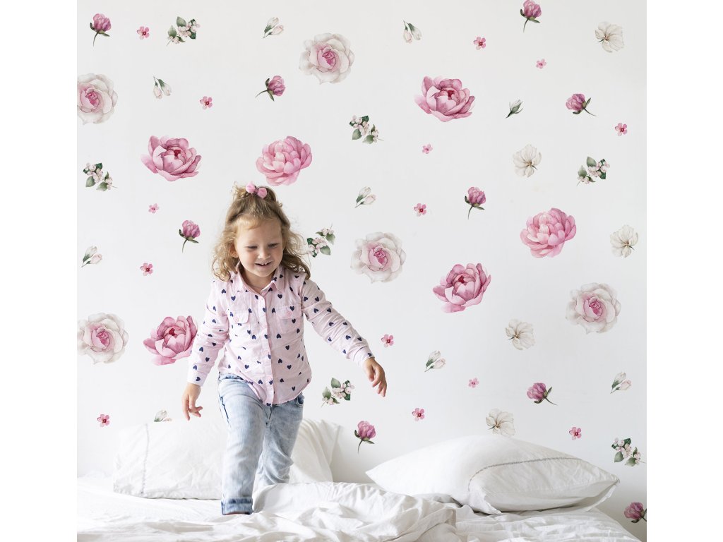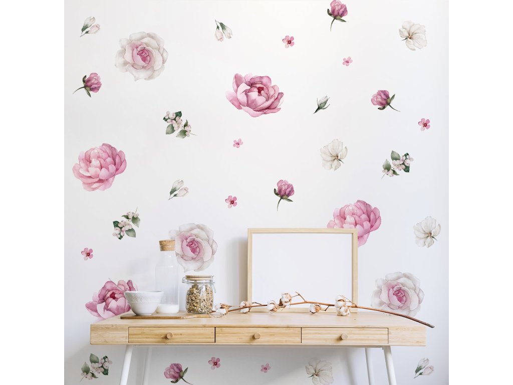 Kvetinové samolepky na stenu. Farebné kvetinové (21)