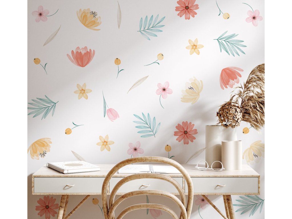 Kvetinové samolepky na stenu. Farebné kvetinové (8)
