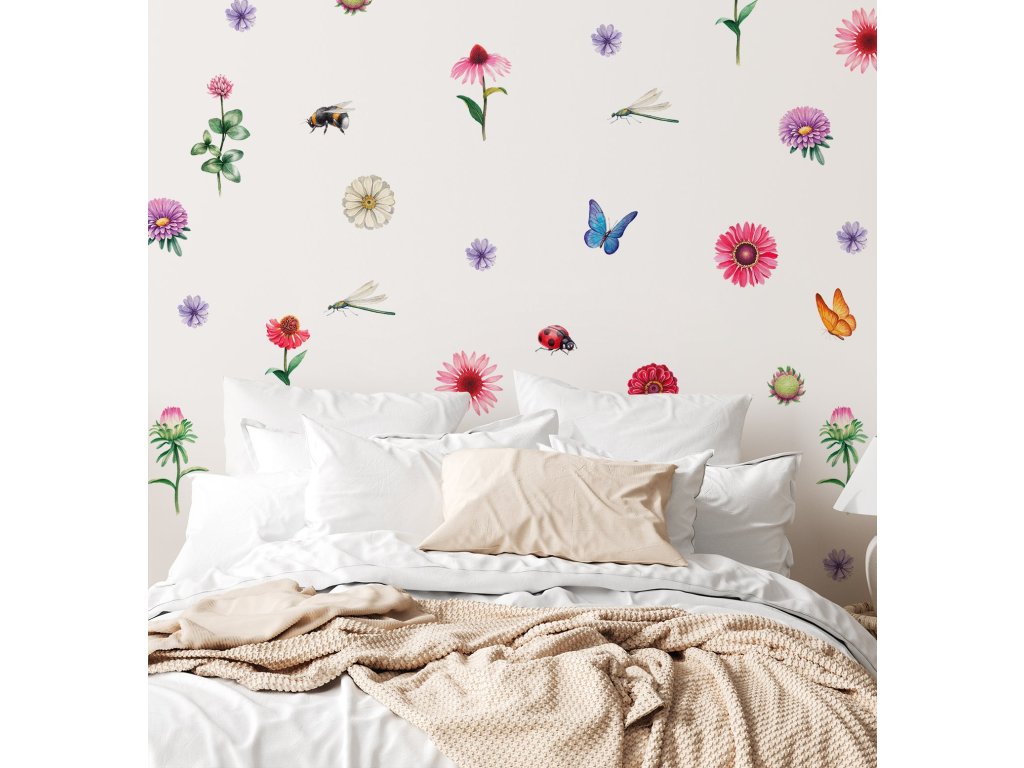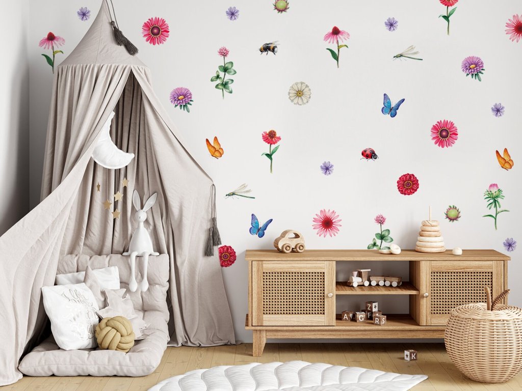Kvetinové samolepky na stenu. Motýlích kvetov