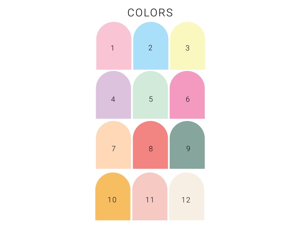 Základná farba: | Farba 1, Farba 2, Farba 3, Farba 4, Farba 5, Farba 6, Farba 7, Farba 8, Farba 9, Farba 10, Farba 11, Farba 12 |